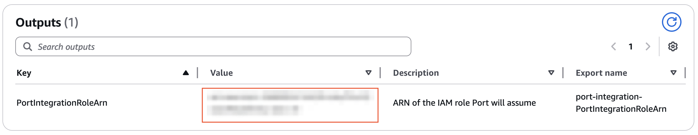 - Copy the value of PortIntegrationRoleArn.
