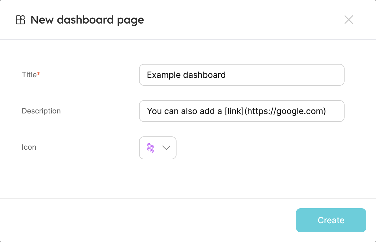 You can provide additional context to your developers by using the Description field when creating a dashboard page.
