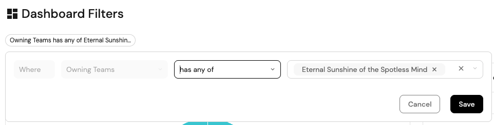 • Filter entities based on selected team(s).