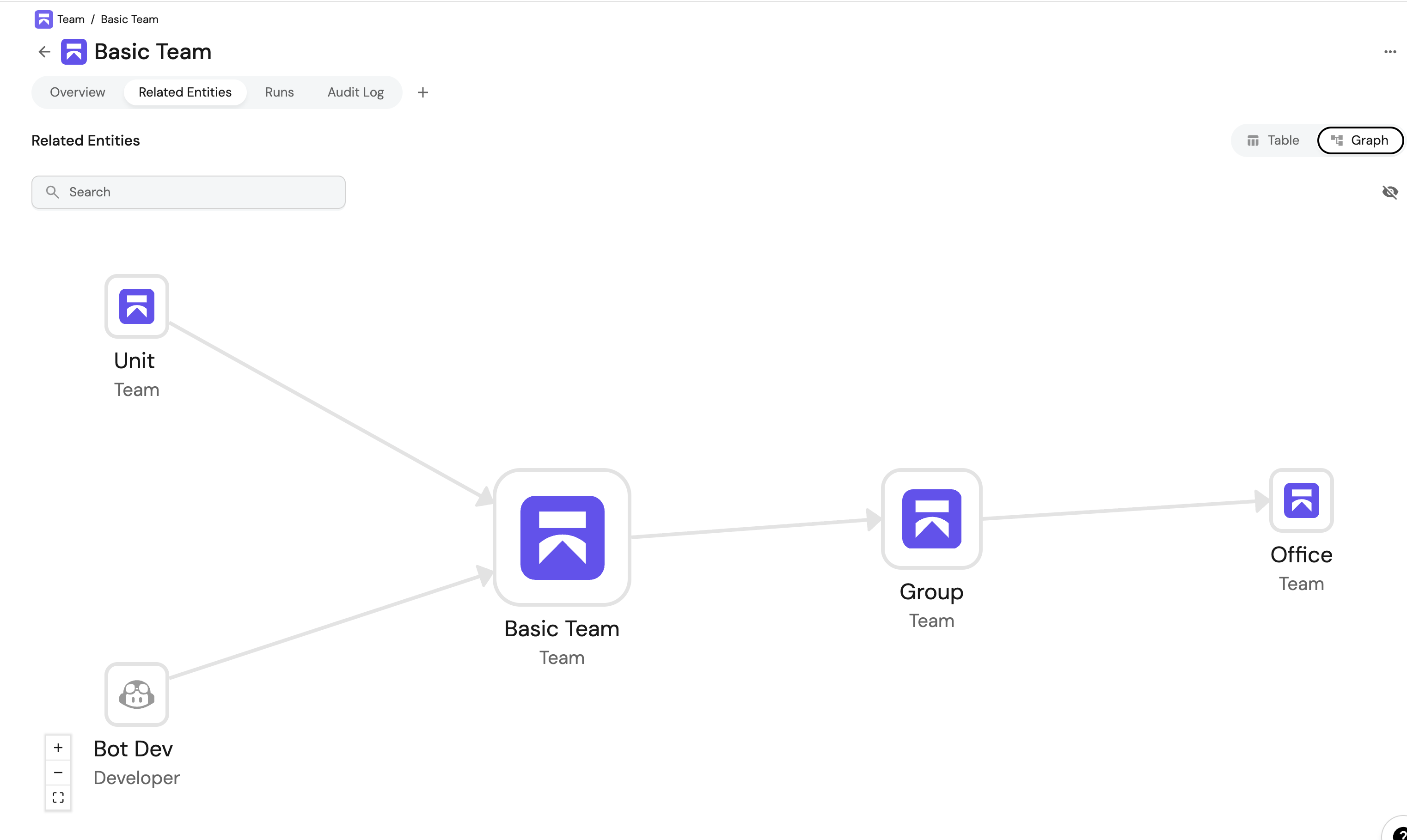 In this example, the system will traverse 2 fixed hops (UnitBasic TeamGroup) and then continue with up to 3 additional hops using the team_self_relation, starting from where the fixed hops left off. This could represent a complete organizational hierarchy from Unit all the way up to higher-level organizational structures.