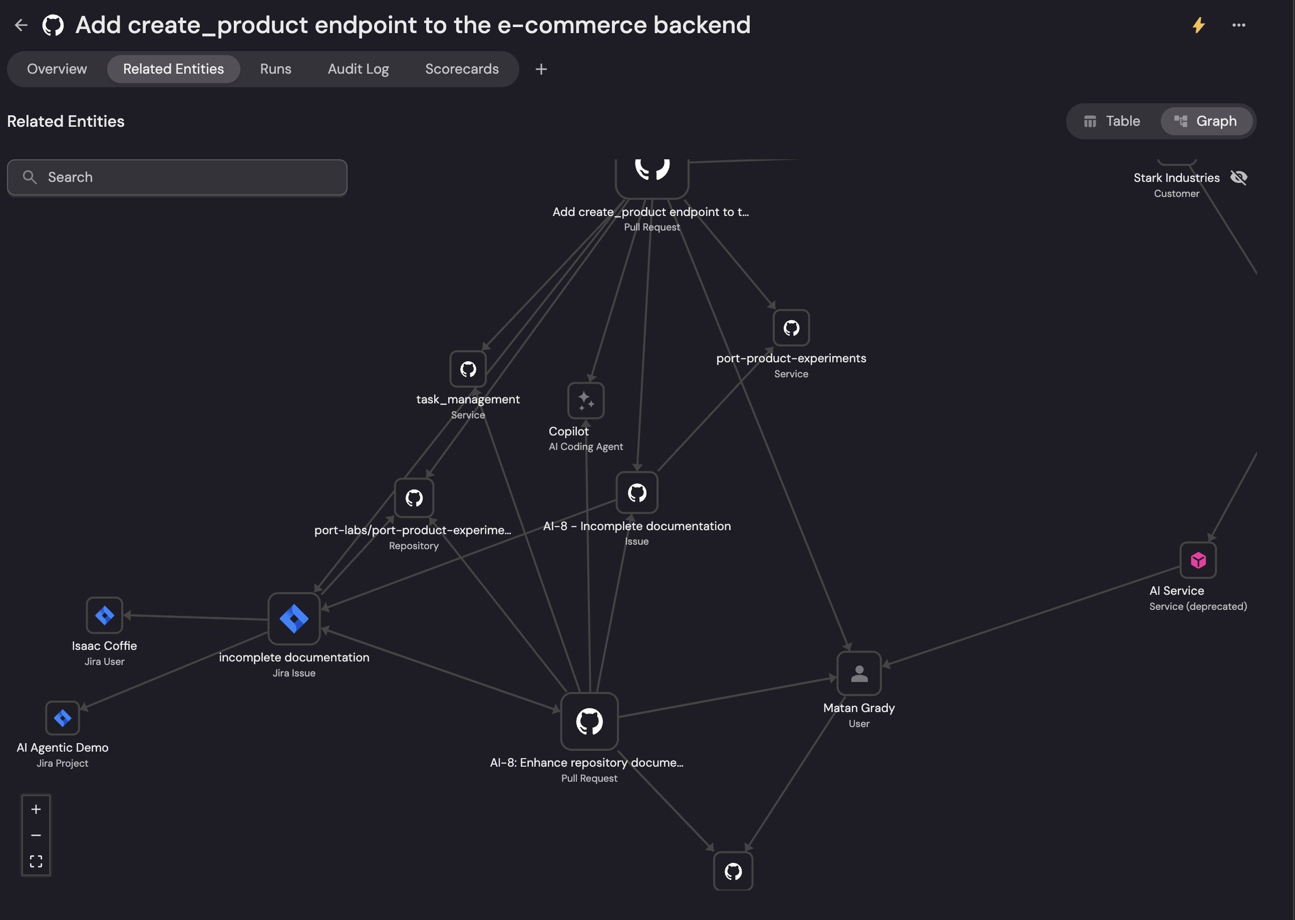 Without Port, a coding agent would only see the code changes and might incorrectly assume this is a production e-commerce feature. Port's catalog knowledge adds the crucial context that this is an internal experimentation tool, changing how reviewers approach the PR.