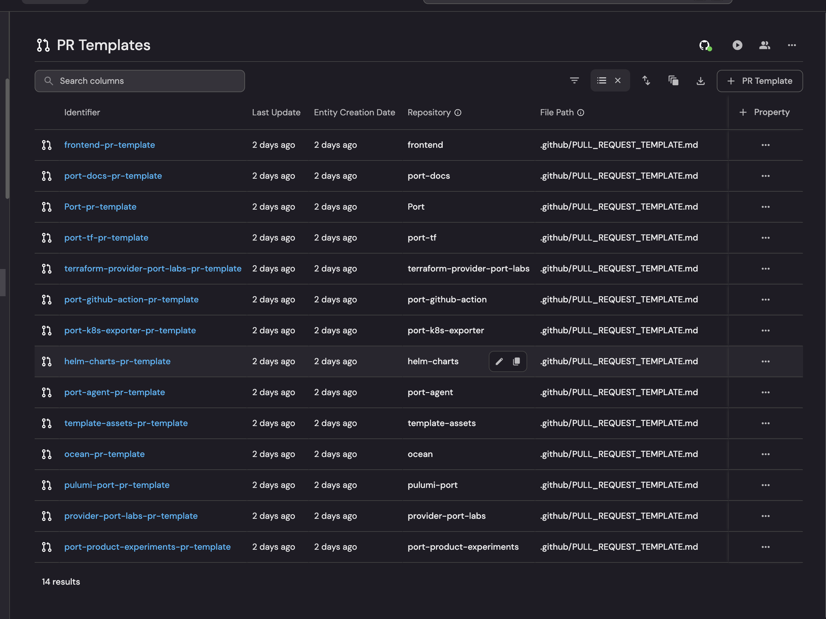 We'll create a PR Template blueprint to store your organization's PR templates and configure the GitHub integration to ingest these templates from your repositories.