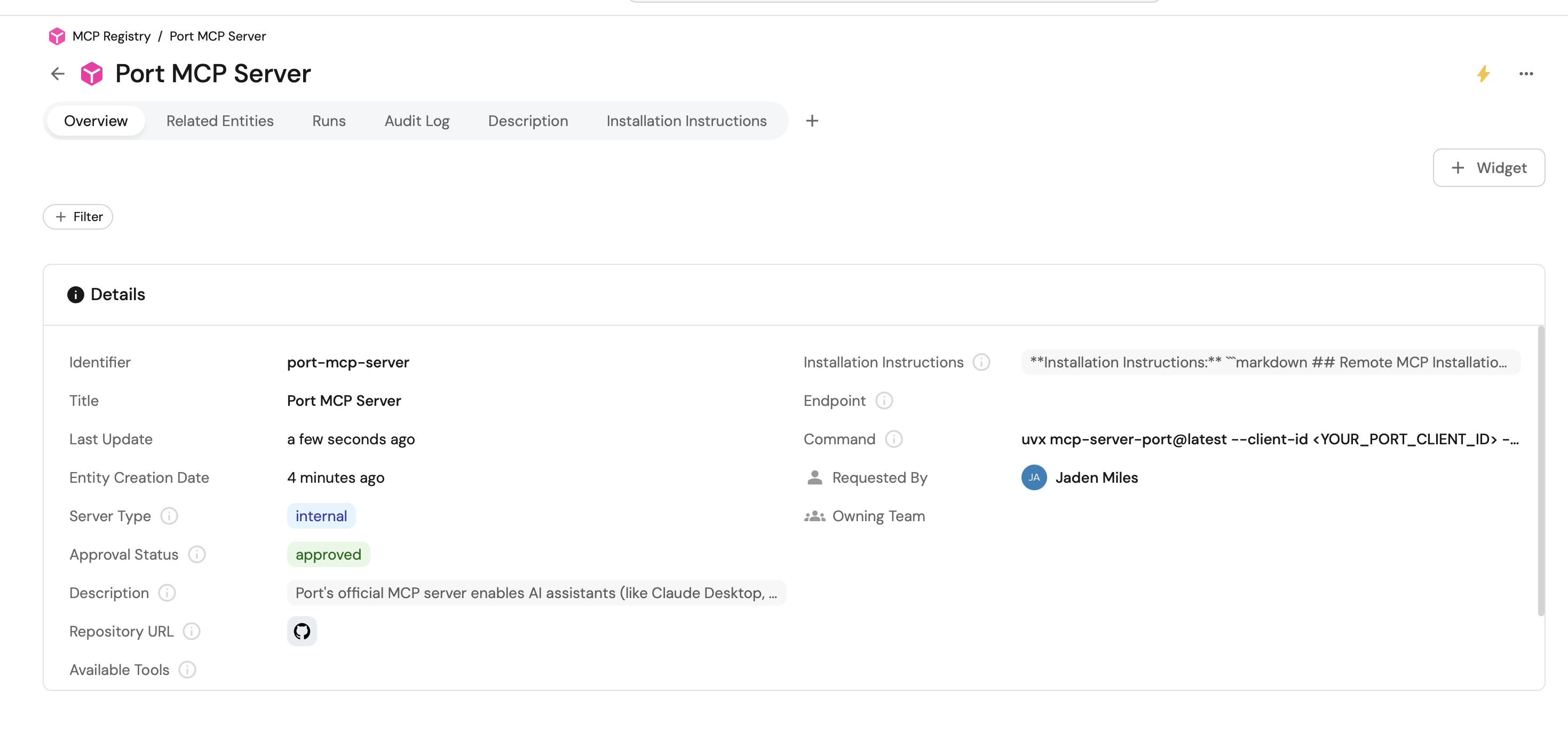 This action creates a new MCP Server entity with status: pending, allowing your team to track and manage MCP server requests.