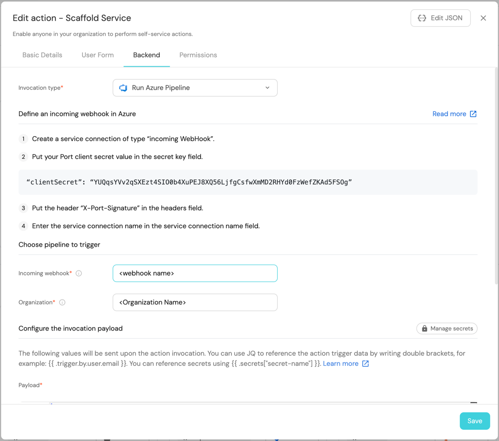 PORT_CLIENT_ID- Your Portclient ID.PORT_CLIENT_SECRET- Your Portclient secret.PERSONAL_ACCESS_TOKEN- Your Azure DevOps personal access token.