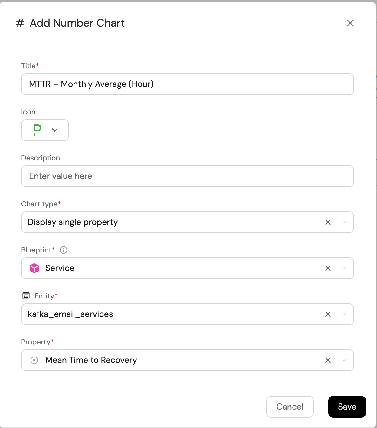 Add this aggregation property to calculate the MTTR:Mean Time to Recovery (click to expand)