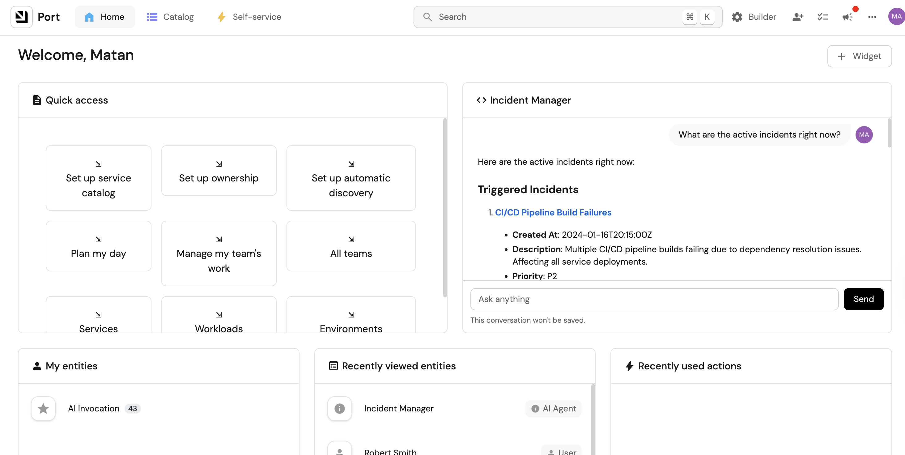 This guide will walk you through setting up an "Incident Manager" AI agent in Port.