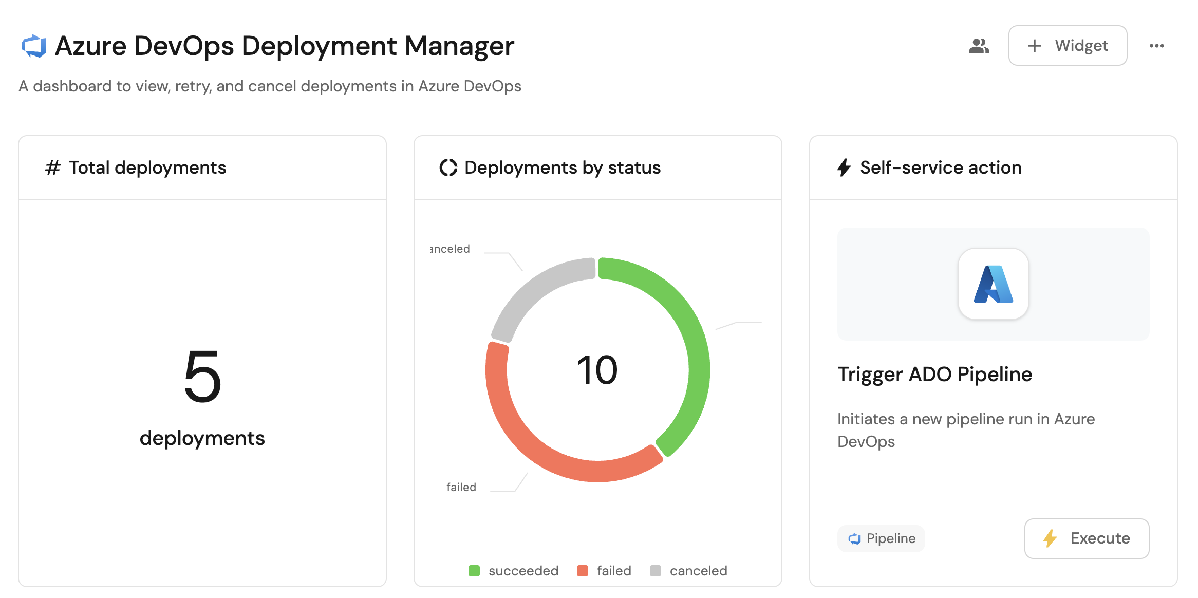 - Build dashboards in Port to monitor and take action on your Azure DevOps deployments.